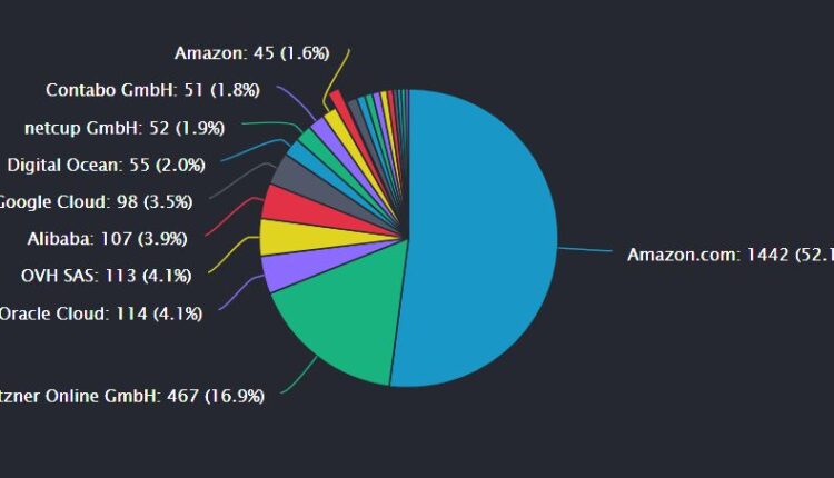 The majority of 4,653 active Ethereum nodes are in the hands of centralized web providers like Amazon Web Services (AWS), which could “expose Ethereum to central points of failure,” according to crypto analytics platform Messari.
