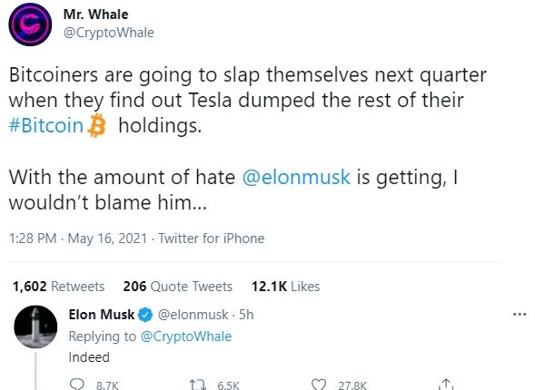 Hvornår solgte Tesla 75 % Bitcoin?