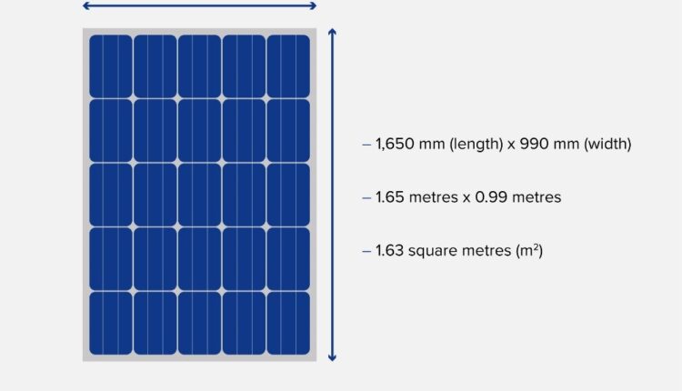 Tyypilliset asuinrakennusten aurinkopaneelien mitat ovat nykyään noin 65 x 39 tuumaa tai 5,4 jalkaa x 3,25 jalkaa, mutta valmistajien välillä on jonkin verran vaihtelua. SunPower-paneelit ovat kooltaan 61,3 tuumaa x 41,2 tuumaa.