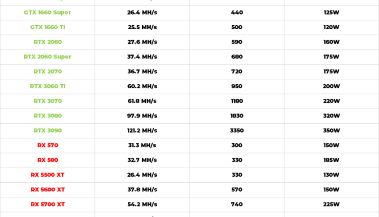 When choosing the best GPU for mining you should consider core clock, memory, memory clock, power connector, power draw and outputs.