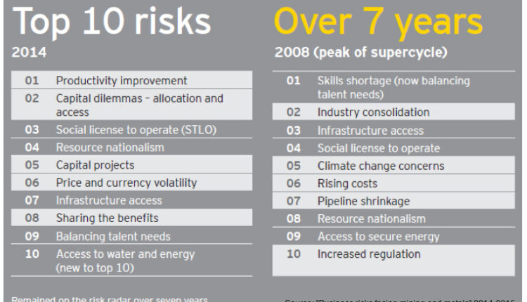 Despite the loosening of some investors’ purse strings, funding and cash flow lead the list of challenges facing the mining industry, according to Ernst & Young.