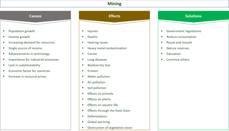 Across the world, mining contributes to erosion, sinkholes, deforestation, loss of biodiversity, significant use of water resources, dammed rivers and ponded waters, wastewater disposal issues, acid mine drainage and contamination of soil, ground and surface water, all of which can lead to health issues in local …