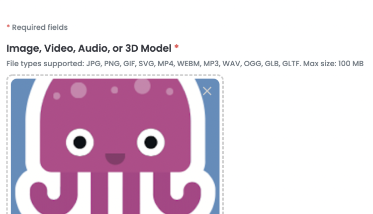 You can use a variety of file formats for images, videos, audio or even 3D models to make your NFT (see below). The maximum file size supported is 100MB, but we recommend keeping it under 100MB for faster load times.