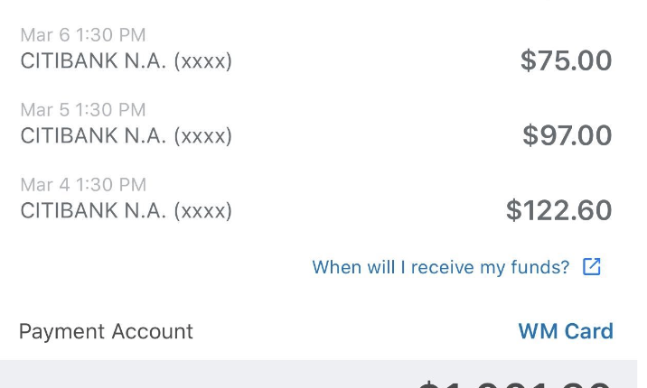 U heeft een overboeking van beschikbaar geld naar uw bankrekening gepland die nog niet is verwerkt. Overboekingen hebben vier werkdagen nodig om te verwerken. Totdat je overboeking is verwerkt en het geld op je bankrekening staat, zie je een uitbetalingsstatus in behandeling.