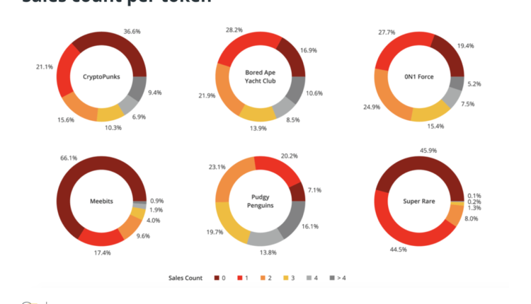 A desigualdade. Verificou-se que 33,6% dos vendedores de NFT vendem suas NFTs por US$ 100 ou menos, e são o maior percentual. Aqueles que ganham mais dinheiro, atingindo o preço de venda geralmente recomendado de 0,5 ETH para NFTs e acima, é um decepcionante 1,8%.