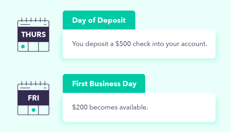 Most of the time, when you deposit a check, a portion of the funds is made available to your account on the same day, with the remainder becoming available on the next business day. 1 Sometimes there are circumstances that cause a check deposit to be placed on a temporary hold of up to seven business days.