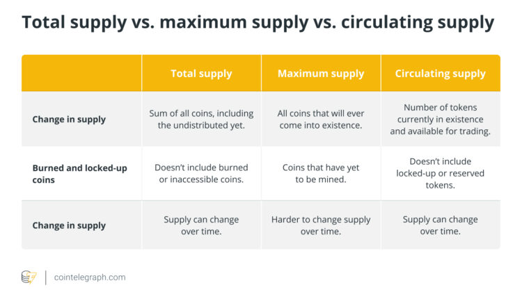 Maximum Supply: It is the maximum number of coins that will ever exist for a crypto currency. There won’t be any more supply once a coin reaches its max supply cap as it is the maximum amount that can ever be mined or produced.